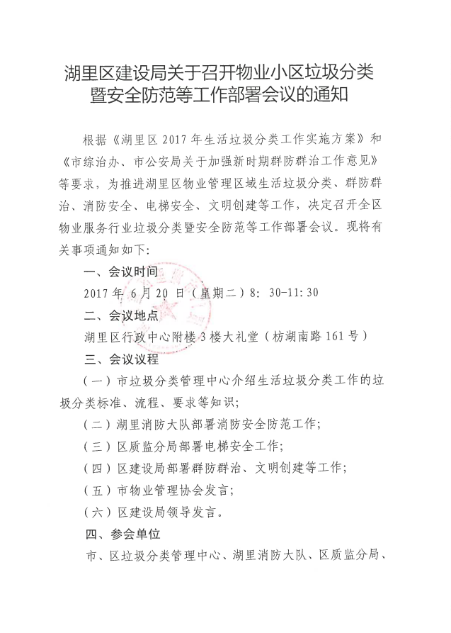 转发湖里区建设局关于召开物业小区垃圾分类暨安全防范等工作部署会议的通知