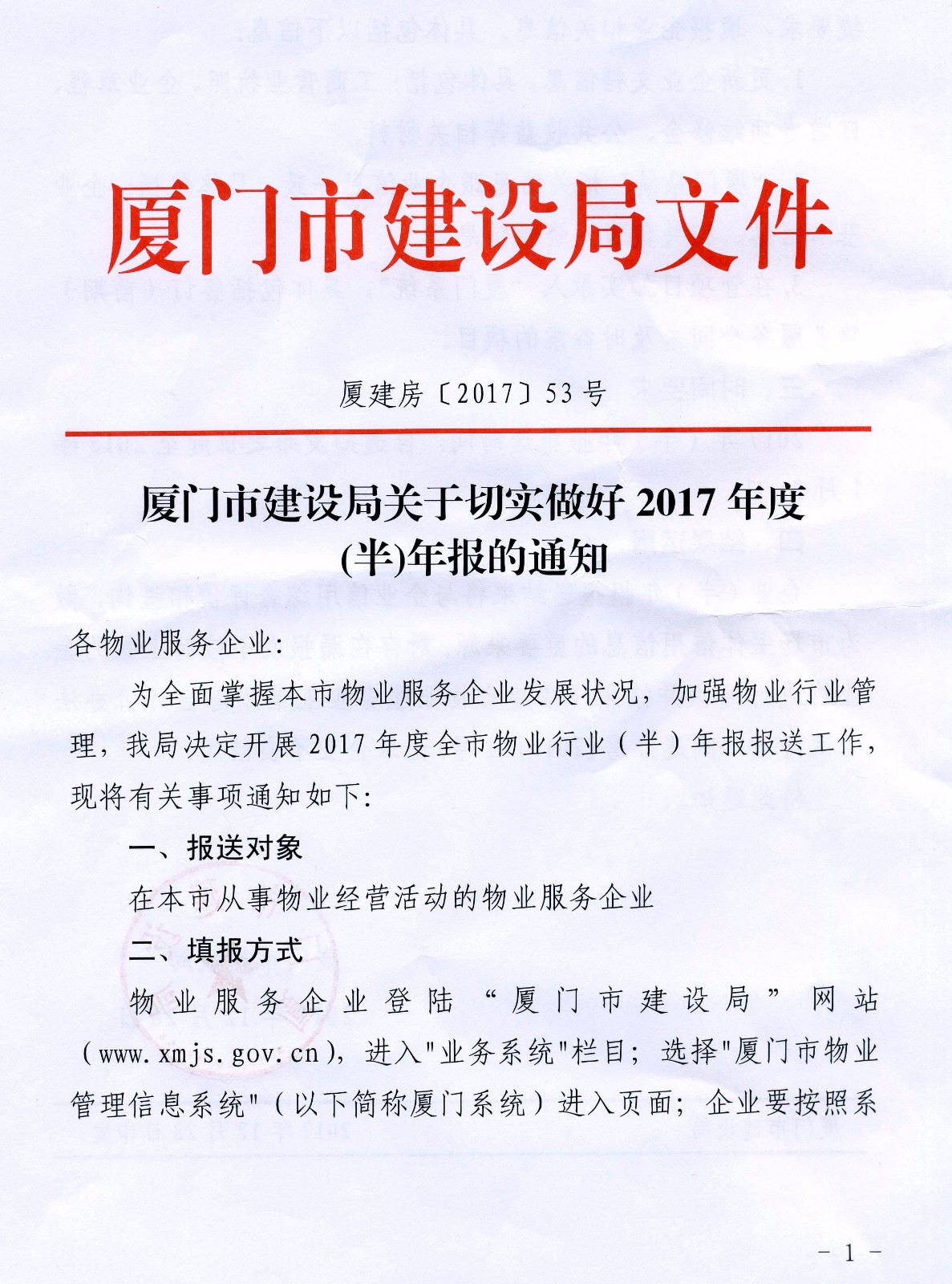转发厦门市建设局关于切实做好2017年度(半)年报的通知