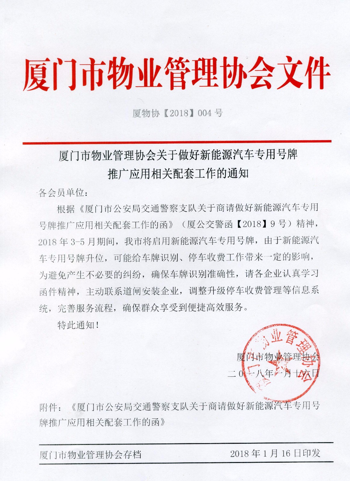 厦门市物业管理协会关于做好新能源汽车专用号牌推广应用相关配套工作的通知